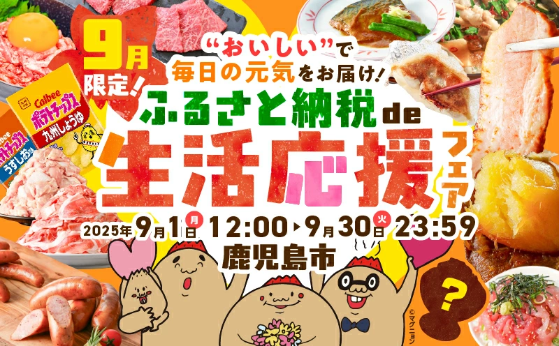 9月も中旬を過ぎてしまってからのご紹介になりますが、鹿児島市のふるさと納税で、「9月限定!“おいしい”で毎日の元気をお届け!ふるさと納税de生活応援フェア」を開催中です。ベーコン・チャーシュー・ウインナーやフランクフルトソーセージの大容量のセットの返礼品をお選びいただくと、プラス1でお届けし、薩摩ハムも皆さまの生活を応援いたしております。